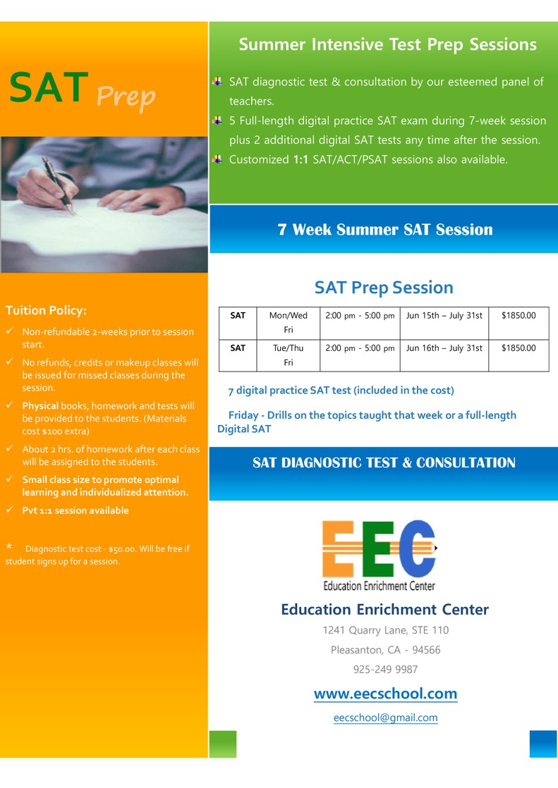 Fall SAT Session Starting - Week of June 15 thFall ACT Session - Contact EEC for Private session or any inquiries